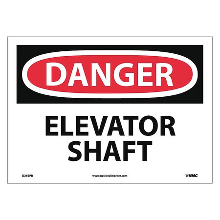 NMC D269PB DANGER - ELEVATOR SHAFT Sign - 14 in. x 10 in. PS Vinyl Danger Sign with Black Text on White Base