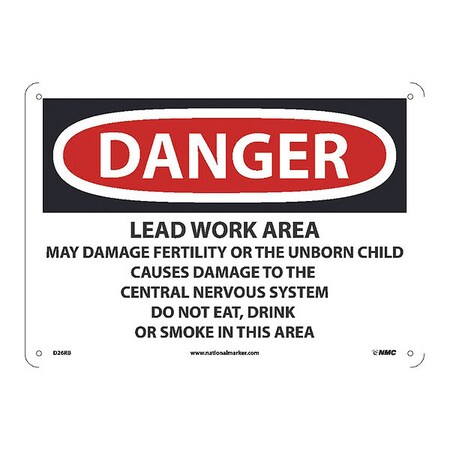 D26RB National Marker Danger Sign -Lead Work Area 10 Inches x 14 Inches, Rigid Plastic