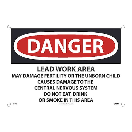 NMC D26RC National Marker Danger Sign -Lead Work Area 14 Inches x 20 Inches, Rigid Plastic