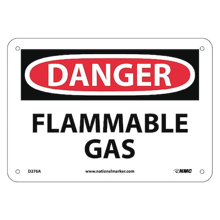 NMC D276A OSHA Sign, Legend "DANGER - FLAMMABLE GAS", 10" Length x 7" Height, Aluminum, Black/Red on White