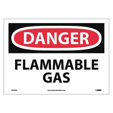NMC D276PB OSHA Sign, Legend "DANGER - FLAMMABLE GAS", 14" Length x 10" Height, Pressure Sensitive Vinyl, Black/Red on White