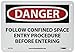 | Feature | Header "DANGER" and Legend "FOLLOW CONFINED SPACE ENTRY PROCEDURE BEFORE ENTERING" |