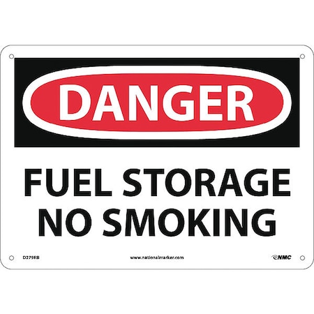 NMC D279RB OSHA Sign, Legend "DANGER - FUEL STORAGE NO SMOKING", 14" Length x 10" Height, Rigid Plastic, Black/Red on White