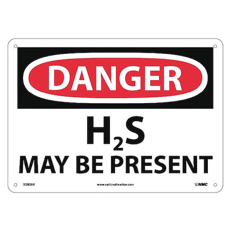 NMC D282AB OSHA Sign, Legend "DANGER - H2S MAY BE PRESENT", 14" Length x 10" Height, Aluminum, Black/Red on White