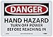 - Header "DANGER" and Legend "HAND HAZARD TURN OFF POWER BEFORE REACHING IN"