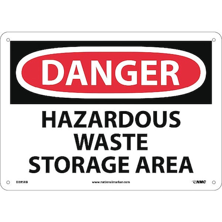 NMC D285RB OSHA Sign, Legend "DANGER - HAZARDOUS WASTE STORAGE AREA", 14" Length x 10" Height, Rigid Plastic, Black/Red on White
