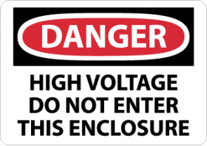 - Header "DANGER" and Legend "HIGH VOLTAGE DO NOT ENTER THIS ENCLOSURE"