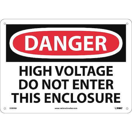 NMC D289RB OSHA Sign, Legend "DANGER - HIGH VOLTAGE DO NOT ENTER THIS ENCLOSURE", 14" Length x 10" Height, Rigid Plastic, Black/Red on White