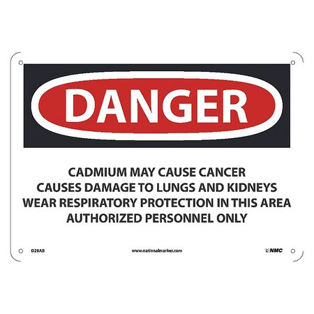 NMC D28AB National Marker Danger Cadmium May Cause Cancer Sign, Causes Damage to Lungs and Kidneys Wear Respiratory Protection 10 Inches x 14 Inches, 040 Alum