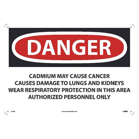 D28AC National Marker Danger Cadmium May Cause Cancer Sign, Causes Damage to Lungs and Kidneys Wear Respiratory Protection 14 Inches x 20Inches, 040 ALUM