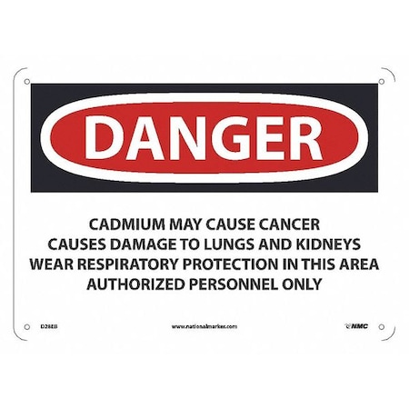 NMC D28EB National Marker Danger Cadmium May Cause Cancer Sign, Causes Damage to Lungs and Kidneys Wear Respiratory Protection 10 Inches x 14 Inches, Fiberglass