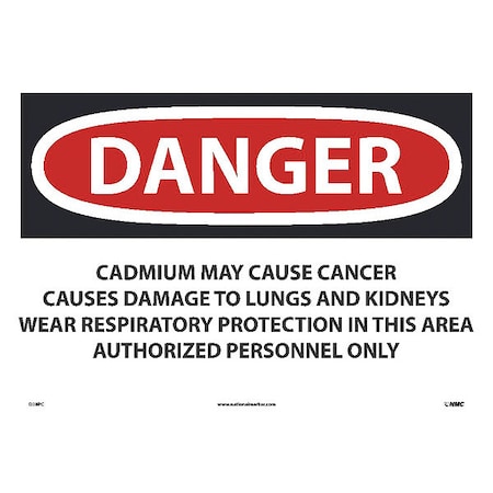 NMC D28PC National Marker Danger Cadmium May Cause Cancer Sign, Causes Damage to Lungs and Kidneys Wear Respiratory Protection 14 Inches x 20Inches, Ps Vinyl