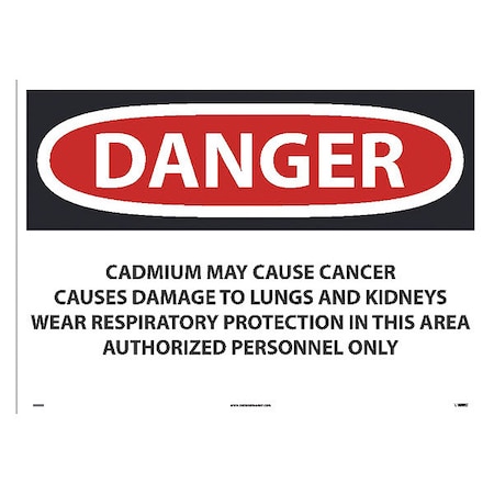 NMC D28PD National Marker Danger Cadmium May Cause Cancer Sign, Causes Damage to Lungs and Kidneys Wear Respiratory Protection 20 Inches x 28Inches, Ps Vinyl