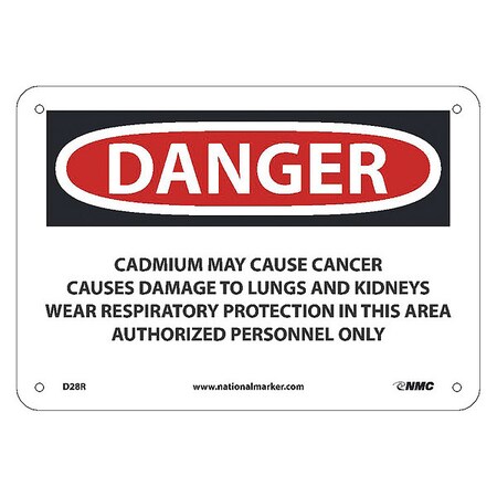 NMC D28R National Marker Danger Cadmium May Cause Cancer Sign, Causes Damage to Lungs and Kidneys Wear Respiratory Protection 7 Inches x 10Inches, Rigid Plastic