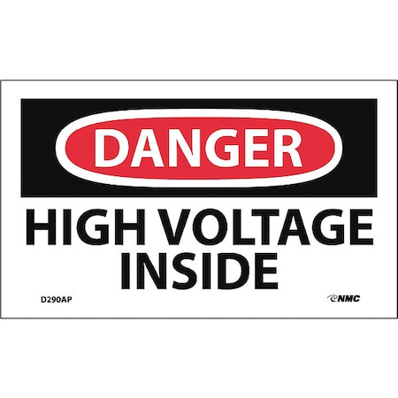 NMC D290AP OSHA Sign, Legend "DANGER - HIGH VOLTAGE INSIDE", 5" Length x 3" Height, Pressure Sensitive Adhesive Vinyl, Black/Red on White (Pack of 5)