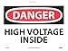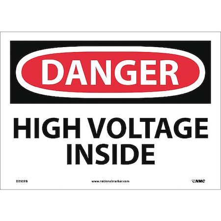 NMC D290PB OSHA Sign, Legend "DANGER - HIGH VOLTAGE INSIDE", 14" Length x 10" Height, Pressure Sensitive Adhesive Vinyl, Black/Red on White