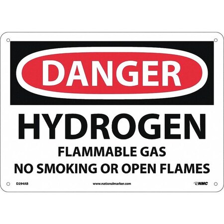 NMC D294AB OSHA Sign, Legend "DANGER - HYDROGEN FLAMMABLE GAS NO SMOKING OR OPEN FLAMES", 14" Length x 10" Height, 0.040 Aluminum, Black/Red on White