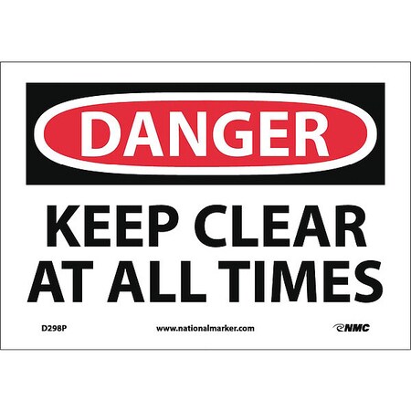NMC D298P OSHA Sign, Legend "DANGER - KEEP CLEAR AT ALL TIMES", 10" Length x 7" Height, Pressure Sensitive Adhesive Vinyl, Black/Red on White