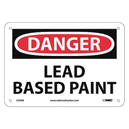 NMC D299R OSHA Sign, Legend "DANGER - LEAD BASED PAINT", 10" Length x 7" Height, Rigid Plastic, Black/Red on White