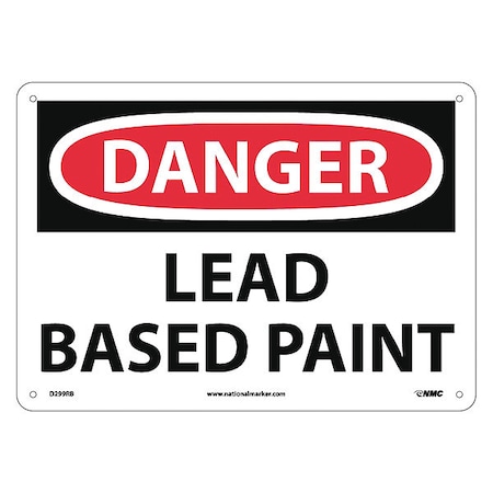 NMC D299RB OSHA Sign, Legend "DANGER - LEAD BASED PAINT", 14" Length x 10" Height, Rigid Plastic, Black/Red on White