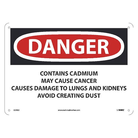 OSHA Sign D29. Legend: Danger Contains Cadmium May Cause Cancer Causes Damage To Lungs and Kidneys Avoid Creating Dust