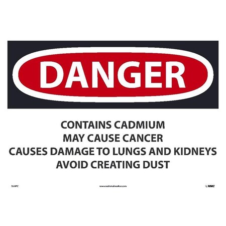 NMC D29P National Marker Container Label (PPE, Waste, Etc.), Danger Contains Cadmium May Cause Cancer Causes Damage to Lungs and Kidneys Avoid Creating Dust, 7 x 10, ps Vinyl
