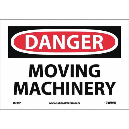 NMC D305P OSHA Sign, Legend "DANGER - MOVING MACHINERY", 10" Length x 7" Height, Pressure Sensitive Vinyl, Black/Red on White