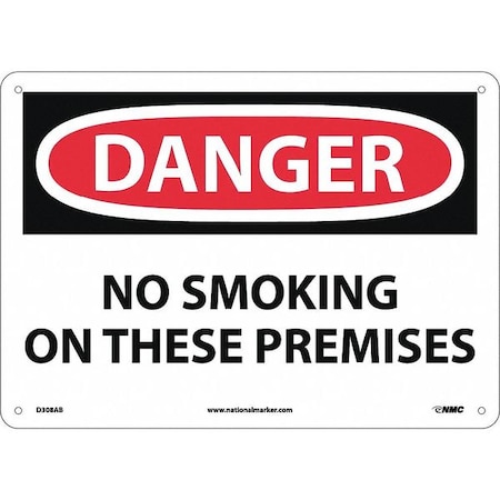 NMC D308AB OSHA Sign, Legend "DANGER - NO SMOKING, ON THESE PREMISES", 14" Length x 10" Height, Aluminum, Black/Red on White