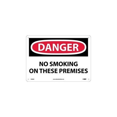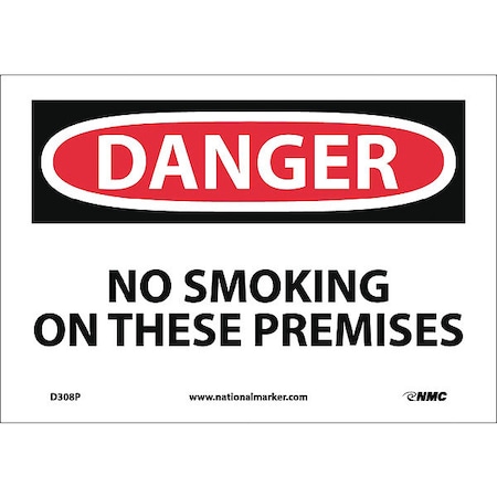 NMC D308P OSHA Sign, Legend "DANGER - NO SMOKING, ON THESE PREMISES", 10" Length x 7" Height, Pressure Sensitive Vinyl, Black/Red on White