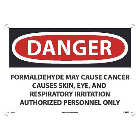 D30AC National Marker Danger Sign - Formaldehyarde May Cause Cancer Causes Skin, Eye, and Respiratory Irritation Authorized Personnel Only, 14 Inches x 20Inches, 040 ALUM