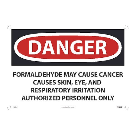 D30RC National Marker Danger Sign - Formaldehyarde May Cause Cancer Causes Skin, Eye, and Respiratory Irritation Authorized Personnel Only, 14 Inches x 20Inches, Rigid Plastic