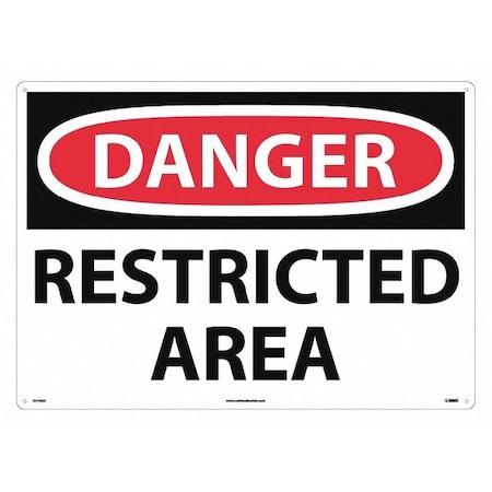 NMC D314AD OSHA Sign, Legend "DANGER - RESTRICTED AREA", 28" Length x 20" Height, Aluminum, Black/Red on White