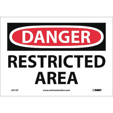 NMC D314P OSHA Sign, Legend "DANGER - RESTRICTED AREA", 10" Length x 7" Height, Pressure Sensitive Vinyl, Black/Red on White