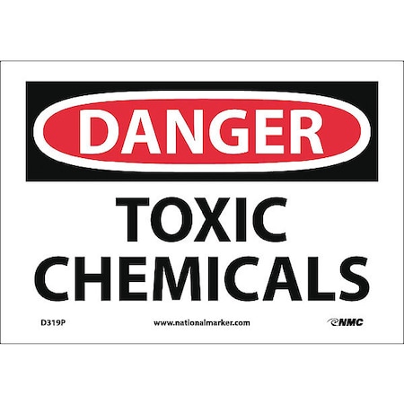 NMC D319P OSHA Sign, Legend "DANGER - TOXIC CHEMICALS", 10" Length x 7" Height, Pressure Sensitive Vinyl, Black/Red on White