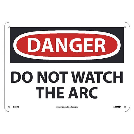 NMC D31AB DANGER - DO NOT WATCH THE ARC Sign - 14 in. x 10 in. Aluminum Danger Sign, Black/White Text on White/Red Base