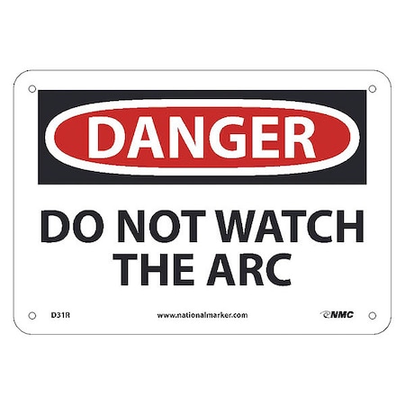 NMC D31R DANGER - DO NOT WATCH THE ARC Sign - 10 in. x 7 in. Rigid Plastic Danger Sign, Black/White Text on White/Red Base