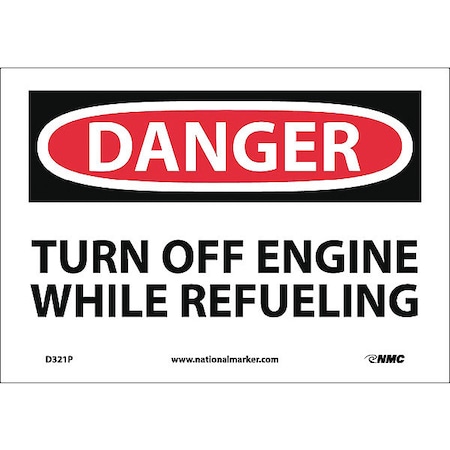 NMC D321P OSHA Sign, Legend "DANGER - TURN OFF ENGINE WHILE REFUELING", 10" Length x 7" Height, Pressure Sensitive Vinyl, Black/Red on White