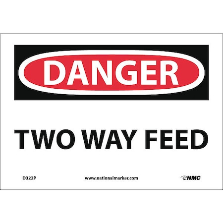 NMC D322P OSHA Sign, Legend "DANGER - TWO-WAY FEED", 10" Length x 7" Height, Pressure Sensitive Vinyl, Black/Red on White