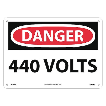 NMC D325EB OSHA Sign, Legend "DANGER - 440 VOLTS", 14" Length x 10" Height, Fiberglass, Black/Red on White