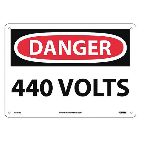 NMC D325RB OSHA Sign, Legend "DANGER - 440 VOLTS", 14" Length x 10" Height, Rigid Plastic, Black/Red on White