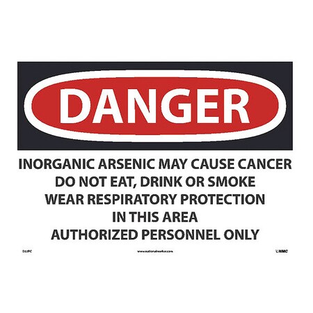 NMC D32PC National Marker Danger Sign - Inorganic Arsenic May Cause Cancer Do Not Eat, Drink or Smoke Wear Respiratory Protection 14 Inches x 20Inches, Ps Vinyl
