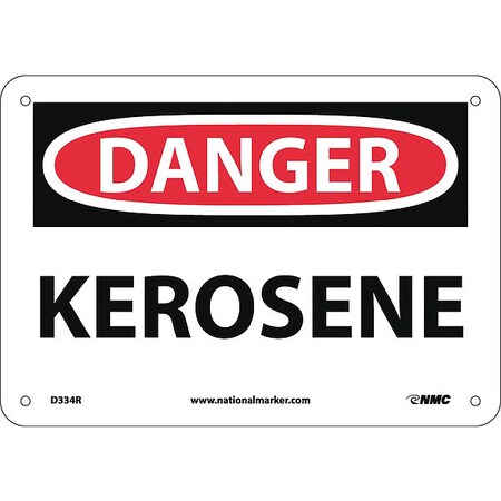 NMC D334R OSHA Sign, Legend "DANGER - KEROSENE", 10" Length x 7" Height, Rigid Plastic, Black/Red on White