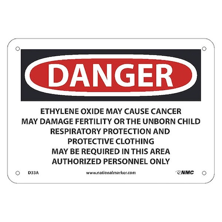 NMC D33A National Marker Danger Sign - Ethylene Oxide May Cause Cancer May Damage Fertility or The Nnborn Child Respiratory, 7 Inches x 10Inches, 040 Alum