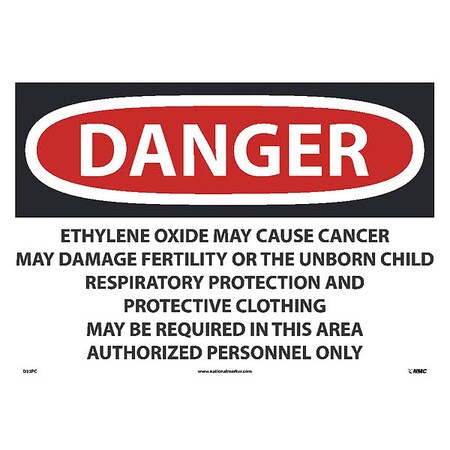 NMC D33PC National Marker Danger Sign - Ethylene Oxide May Cause Cancer May Damage Fertility or The Nnborn Child Respiratory, 14 Inches x 20Inches, Ps Vinyl