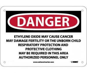 OSHA Sign D33. Legend: Danger Ethylene Oxide May Cause Cancer May Damage Fertility Or The Unborn Child Respiratory . . . Area Authorized Personnel Only