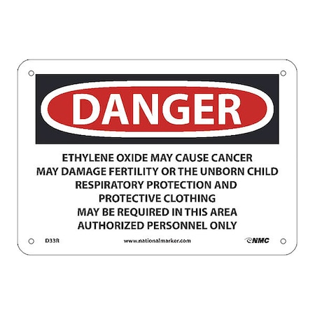 D33R National Marker Danger Sign - Ethylene Oxide May Cause Cancer May Damage Fertility or The Nnborn Child Respiratory, 7 Inches x 10Inches, Rigid Plastic