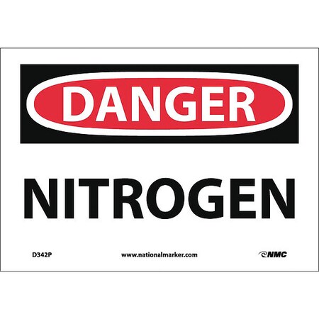NMC D342P OSHA Sign, Legend "DANGER - NITROGEN", 10" Length x 7" Height, Pressure Sensitive Vinyl, Black/Red on White