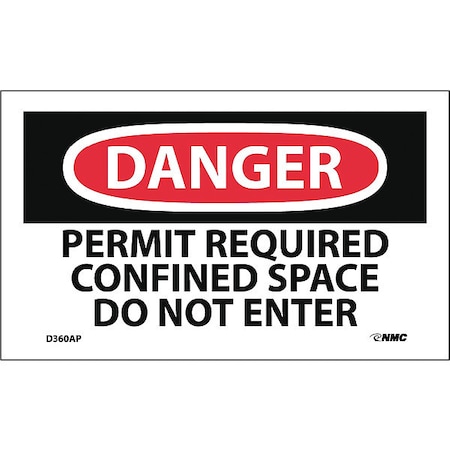 NMC D360AP OSHA Sign, Legend "DANGER - PERMIT REQUIRED CONFINED SPACE DO NOT ENTER", 5" Length x 3" Height, Pressure Sensitive Vinyl, Black/Red on White (Pack of 5)