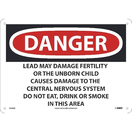 OSHA Sign D36. Legend: Danger Lead May Damage Fertility Or The Unborn Child Causes Damage To The Central Nervous System Do Not Eat, Drink Or Smoke In This Area