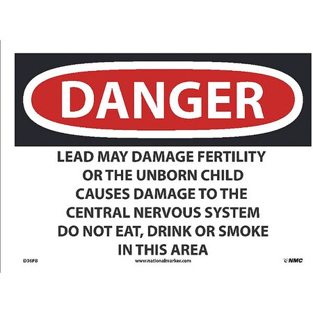 OSHA Sign D36. Legend: Danger Lead May Damage Fertility Or The Unborn Child Causes Damage To The Central Nervous System Do Not Eat, Drink Or Smoke In This Area